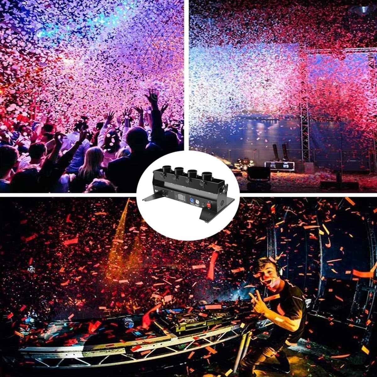 Elektrisch Confetti-Kanon Voor Bruiloften | Confetti-Kanon Met 4 Koppen | Voor Dj-Evenementen, Bruiloften, Clubfeesten En Podiumshows